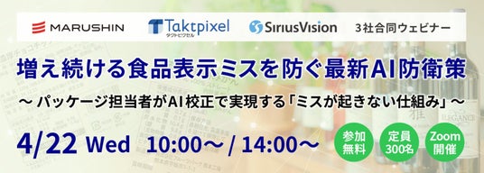 昨年12月にリリースしたニュースから4か月、増え続ける食品表示ミスを防ぐ最新AI防衛策として、パッケージ担当者がAI校正で実現する「ミスが起きない仕組み」をご紹介いたします。ぜひ参加ご検討ください。