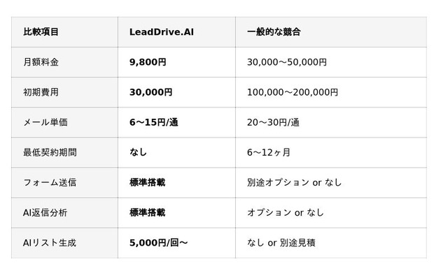 LeadDrive.AIの新料金体系は、これらすべてを解消する設計となっています。