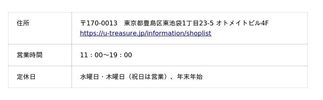 お客様のお問い合わせ窓口(ユートレジャーオンラインショップ)◆お問い合わせフォーム>> https://u-treasure.jp/contact