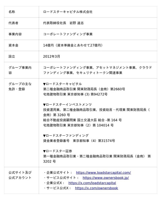 『OwnersBook』は、ロードスターグループが2014年9月にサービス開始した日本初の不動産特化型クラウドファンディングサービスです。個人も機関投資家と同様のリスク・リターンでプロ向け不動産投資領域に投資参加できる世界の実現を目指しており、サービス開始以来順調に成長しています。