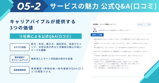 株式会社アクシアカンパニーは、クライアントにヒアリングを行い、現役社員のリアルな声をQ&A形式(口コミ)で毎月継続的に発信しています。