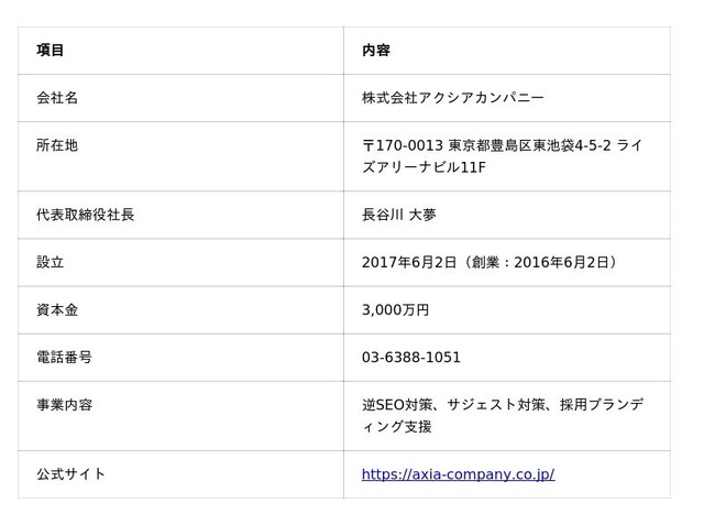 この構造的な課題を受け、株式会社アクシアカンパニーは2026年4月1日、検索上位最適化・社員Q&A(口コミ)発信・最新採用情報ページ整備の3施策を12ヶ月の完全伴走で提供する採用ブランディングサービス「キャリアバイブル」の提供を開始しました。