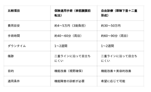 眼瞼下垂の手術方法比較(保険適用 vs 自由診療)