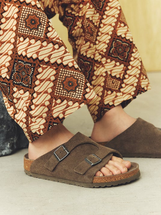 さらに、フットベッドライニングにはグレーのカラースウェードを継続採用。シーズンをまたいで 統一された仕様とすることで、別注モデルとしてのアイデンティティを強調しています。 ベースとなったのは、「BIRKENSTOCK」を代表するモデルZürich。1964年の誕生以来、60年以 上にわたり支持され続けてきたユニセックスサンダルで、甲を広く覆うアッパーに、ブルータリ ズムにインスパイアされたむき出しのコルクを合わせた、タイムレスなデザインが特徴です。 BIRKENSTOCKが発明した解剖学に基づく立体的なフットベッドは、高いホールド感で自然な 歩行を促します。 2つのバックルによるフィット調整により、柔らかなスウェードレザーのアッパーが足に自然と馴 染み、素足の延長のような快適な履き心地を実現。裸足からソックス合わせまで、シーズンレ スでの着用を可能にします。