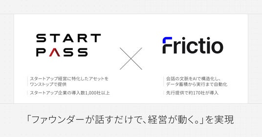 スタートアップが初期フェーズから経営の時間損失を防げるよう、StartPassの「経営加速クラウド」「Growth Pass」を通じてFrictioの特別プランを提供します。