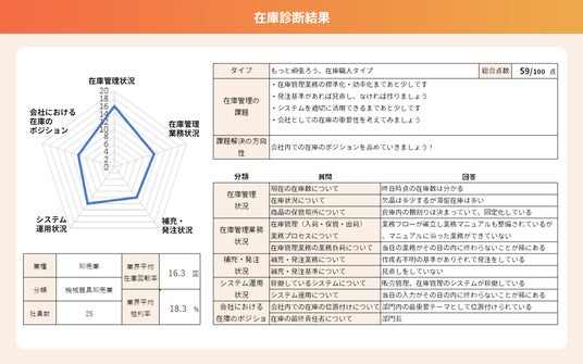 この度、「在庫の何が問題かわからない」という企業の悩みを解消し、最適な在庫管理の第一歩を支援するため、提供中の「無料オンライン在庫診断」にAIからのアドバイス機能を新たに搭載し、2026年4月9日よりリニューアル公開したことをお知らせします。