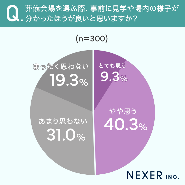 質問9:葬儀会場を選ぶ際、事前に見学や場内の様子が分かったほうが良いと思いますか?