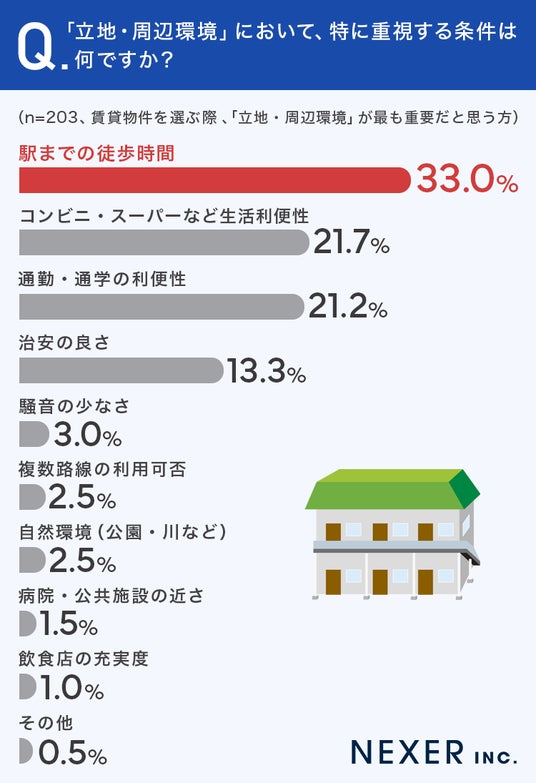 最も多かったのは「駅までの徒歩時間」で33.0%でした。