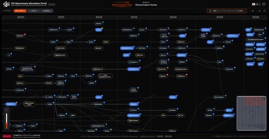 三井物産セキュアディレクション株式会社(本社:東京都中央区、代表取締役社長:鈴木大山)のサイバーインテリジェンスグループ(CIG)は、本日、「CIG Ransomware Information Portal」(以下、本Webアプリ)を公開しました。本Webアプリは、ランサムウェアグループの動向や相関関係などの脅威情報を集約・可視化する世界初(※)のWebアプリです。公開時点で、400以上のランサムウェアグループの情報を収録しています。利用登録は不要で、どなたでも無料で利用できます。