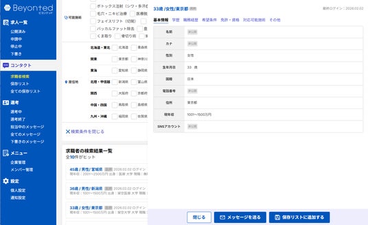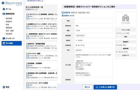 「Beyonted」は、こうした双方の課題を解消し、美容医療業界における採用の「透明化」と「効率化」を実現するために誕生しました。[Iフ2]