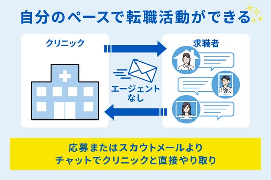 自動配信ではなく、クリニックの採用担当者が直接スカウトを実施。本当に関心を持った人材にアプローチが届くため、ミスマッチを抑制します。