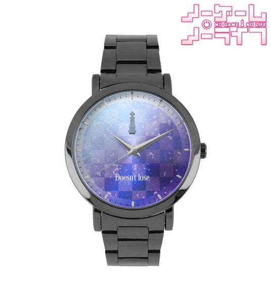 文字盤や針はシンプルにまとめつつ、アクセントとして「チェスの駒」と、印象的なセリフ「Doesn’t lose」をレイアウト。