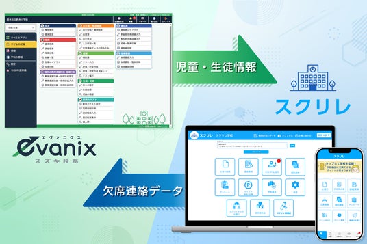 スズキ教育ソフト株式会社(本社:静岡県浜松市、代表取締役社長:鈴木広則、以下 スズキ教育ソフト)の統合型校務支援システム「evanix(読み:エヴァニクス)」が、理想科学工業株式会社(本社:東京都港区、代表取締役社長:羽山明、以下 理想科学工業)が提供するデジタル連絡ツール「スクリレ」と、2026年8月からAPI※によるシステム連携を開始いたします。