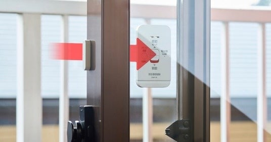本体の厚みは約8mm(※5)と薄型で、窓の開閉を妨げることなく設置できるので、日常生活に支障なく利用できます。さらに、同梱している警告ラベルを屋外から見える位置に貼ることで、侵入抑止効果も期待できます。両面テープで簡単に設置できるため、防犯対策の初心者から、既存の対策を補完したい方まで、住まいの窓を手軽に防犯強化できます。