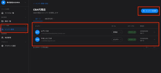 4. レビュー状況の可視化CRごとに関係者の確認ステータスをリアルタイム表示。「承認済み」「修正中」「未確認」が視覚的に把握でき、代理店・クライアントそれぞれの承認状況も明確に分かれて表示されます。