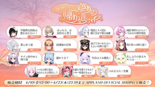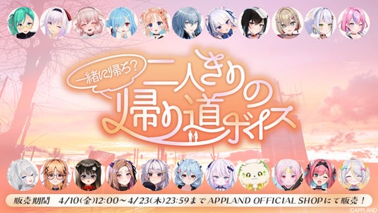 .LIVEとぶいぱいメンバーそれぞれが考案した、"帰宅"に関するシチュエーションが楽しめるボイスコンテンツをAPPLAND OFFICIAL SHOP(https://4693.live/)にて2026年4月10日(金)12時から販売いたします。