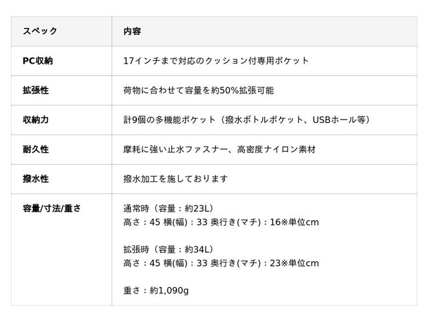 2. ユーザーの「あったらいいな」を細部まで具現化●拡張機能: サイドのジップを1周回せば、マチが16cmから23cmに。