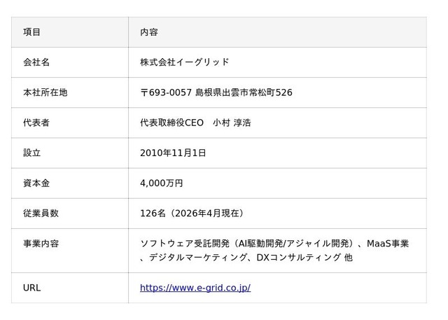 株式会社イーグリッド(本社:島根県出雲市、代表取締役CEO:小村 淳浩、以下「イーグリッド」)は、2026年4月1日付をもって、株式会社Donatello(本社:島根県出雲市、代表取締役:吉岡 祐太、以下「Donatello」)の発行済全株式を取得し、同社を完全子会社化いたしましたのでお知らせします。