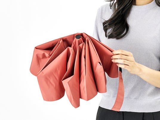 しかし、この急速な進化の中で置き去りにされてきた課題があります。「たたむ」行為そのもののストレスです。建物に入る際、濡れた生地をまとめきれず手間取る数十秒。バッグの中で整わないまま収まった傘。どれだけ服装や持ち物を整えていても、傘を閉じた後の「もたつき」だけが、その人の印象を損なうと言っても過言ではありません。