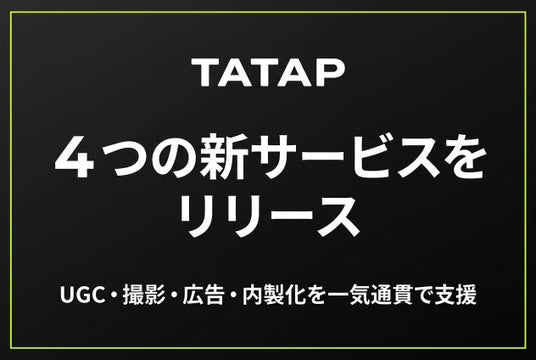 株式会社TaTap(本社:東京都千代田区、代表取締役:富田 竜介、以下TaTap)は、SNSマーケティング支援をさらに強化する4つの新サービス「TaTap UGC Studio」「TaTap Creative Studio」「TaTap AD Studio」「TaTap Inhouse Studio」を2026年4月10日より提供開始いたしました。