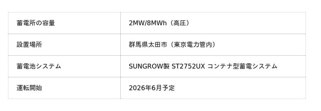 また、東急パワーサプライと当社は今後の取り組みとして、2026年5月に三重県津市、同年6月に群馬県太田市において、それぞれ出力2MW/容量8MWhの高圧系統用蓄電所の営業運転開始を目指しております。