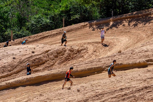 コースには深い砂地のダートや急勾配のジャンプ台、鋭くえぐられたコーナーなど、モトクロスならではの地形が連続します。舗装されたロードとは異なる走りごたえがあり、通常のランニング大会では味わえない体験ができます。