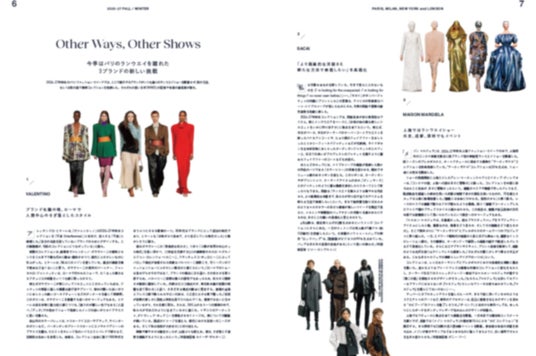 今回もパリとミラノ、ニューヨーク、そしてロンドンのファッション・ウイークでかき集めた数百枚の写真と共に、今シーズンのムードやアイテム、素材、色柄、ディテール、バッグ&シューズを筆頭とするアクセサリーなどのトレンドを分析。同時にトレンドを形作る潮流を読み解くためのデザイナーやバイヤーへのインタビュー、コラムなど、盛りだくさんの内容でお届けしています。