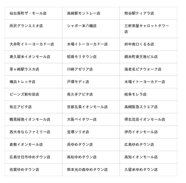 ◆キャンペーン開催店舗(都道府県順)