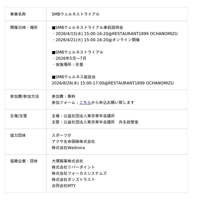 公益社団法人東京青年会議所が主催するウェルネストライアルが始動いたします。