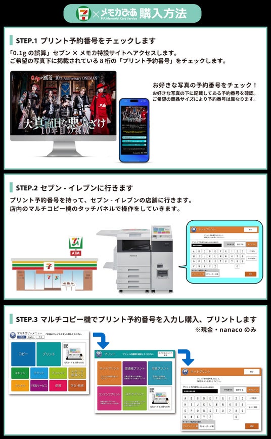 株式会社セブン‐イレブン・ジャパン(本社:東京都千代田区、代表取締役社長:阿久津 知洋)は、ヴィジュアル系バンド『0.1gの誤算』のライブフォトを4月10日(金)より、全国のセブン‐イレブンのマルチコピー機にて販売を開始いたしました。
