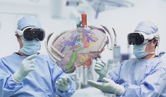 Holoeyes MDは、CTやMRIなどの医用画像をクラウド上で空間コンピューティングに対応した3Dモデルへ変換し、仮想空間および現実空間に表現する、医療機器認証を受けた医療用画像処理ソフトウェアです。病態の特徴や臓器の奥行き等、平面モニタ上では伝わりにくい立体的な空間情報を得ることができます。医療機関での診断治療計画や手術手技のシミュレーションなど、主に外科領域で用いられていますが、医学教育、研修などにも活用されています。