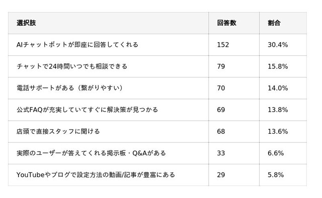 安心サポートは「AIチャットボット」が30.4%でトップ