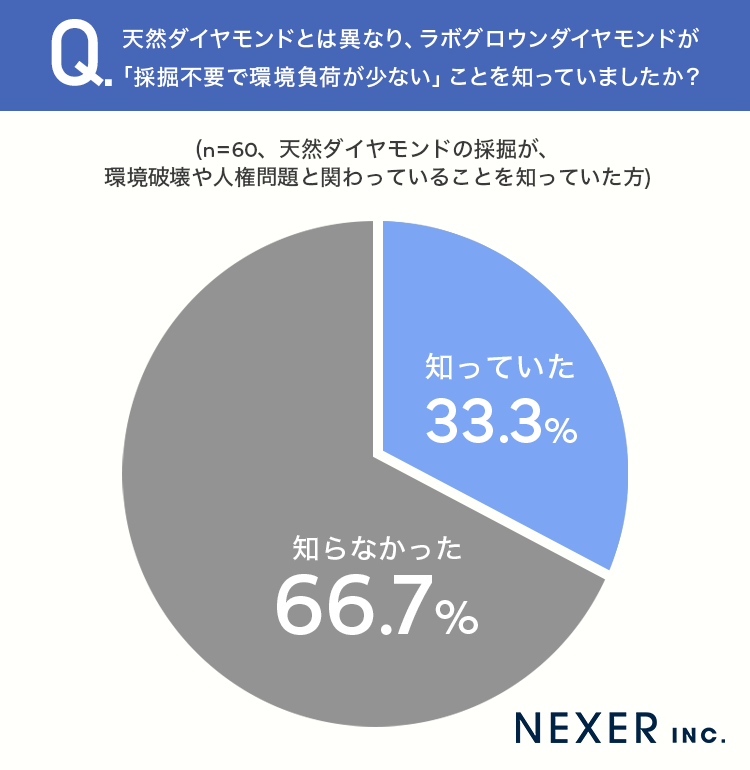 ■66.7%が、ラボグロウンダイヤモンドの環境負荷の少なさを「知らなかった」と回答