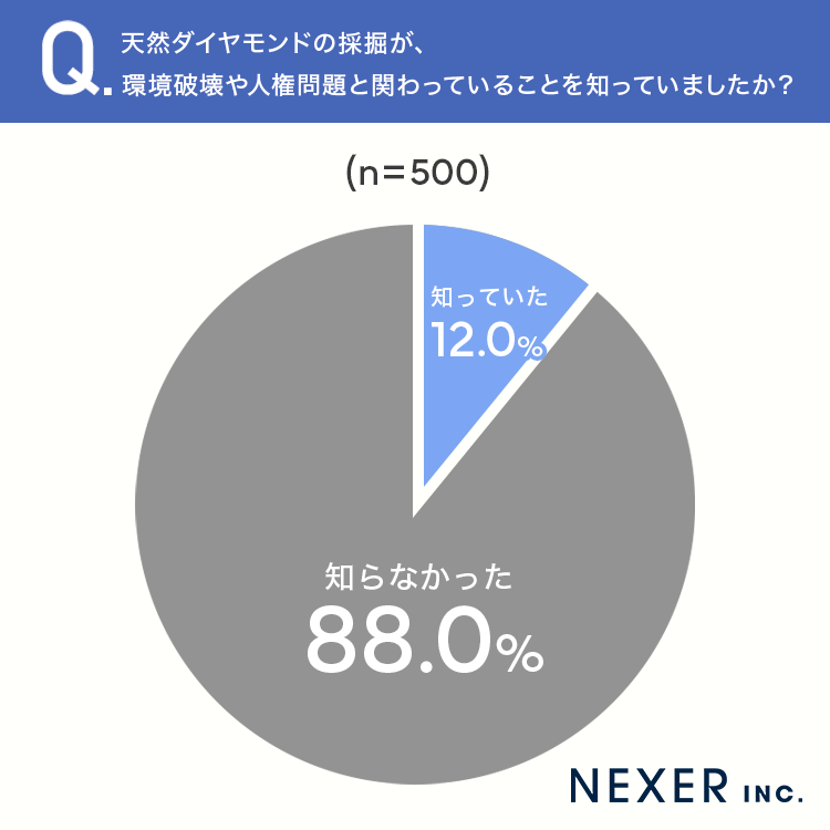 ■88.0%が、天然ダイヤモンドの採掘と環境破壊・人権問題の関わりを「知らなかった」と回答