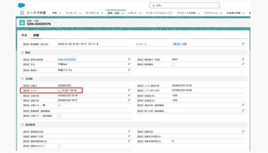 本機能の導入により時間の自動計算やエラーの見える化がされ、申請にかかる業務を短縮できます。