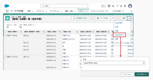 レポートからExcelやCSVにエクスポート