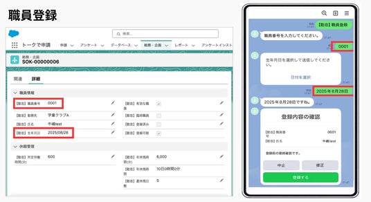 LINEから職員番号と生年月日を入力し、確認してから登録します。