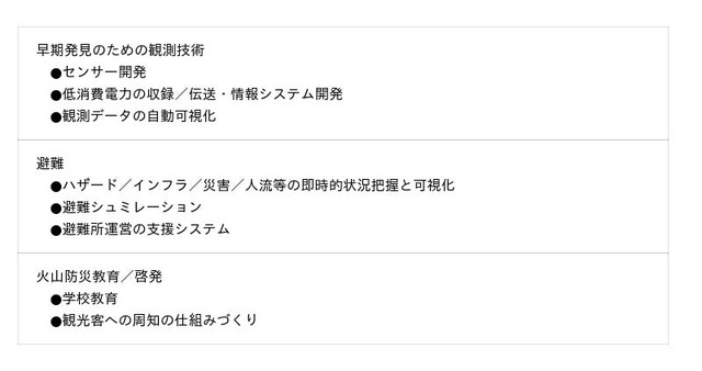 一例として下記。これ以外でも火山防災をテーマとする提案であれば可能