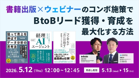 ウェビナーマーケティングツール「Bizibl(ビジブル)」を提供する株式会社Bizibl Technologies(本社:東京都千代田区、代表取締役:花谷 燿平、以下 Bizibl)は、書籍出版とウェビナーを掛け合わせたBtoBリード獲得・育成手法を解説するウェビナー「書籍出版×ウェビナーのコンボ施策でBtoBリード獲得・育成を最大化する方法」を、2026年5月12日(火)から5月15日(金)までの期間、Bizibl上にて開催いたします。