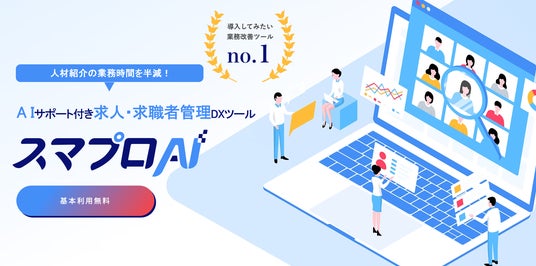 スマプロAI for AGENTは人材紹介会社様の業務工数を半分にし、売上に集中していただくことを目標に開発した、AIサポート付きの求人・求職者管理ツールです。