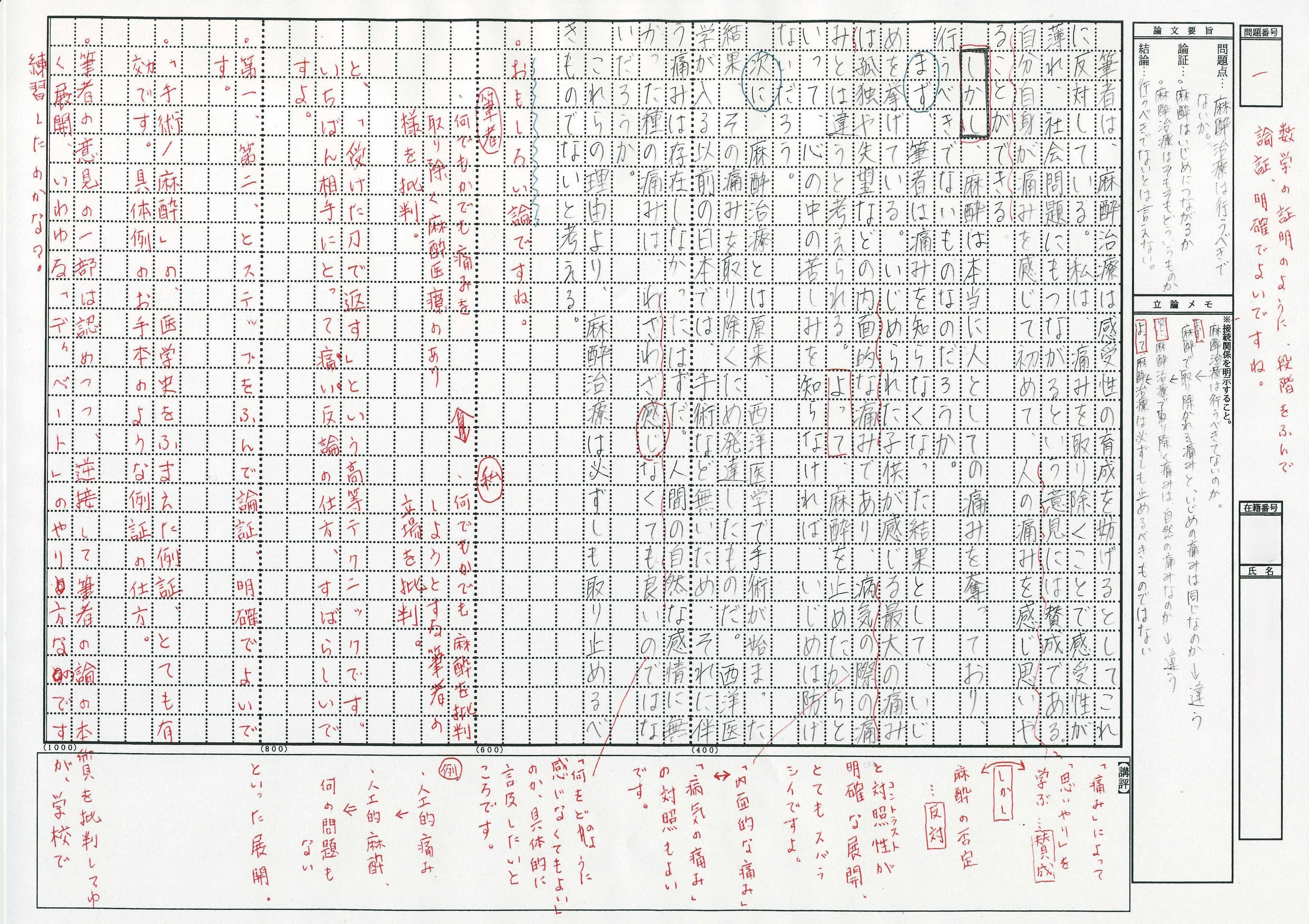 【合格者の添削答案:読解したら、要約、解答根拠を明示して解答→立論してから論述】