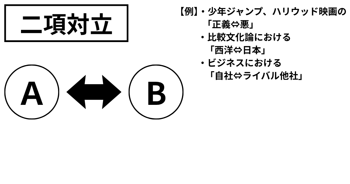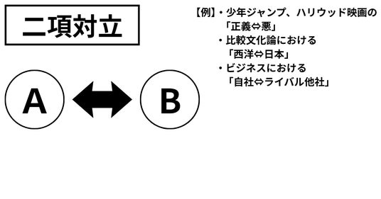 「二項対立」…敵を知らば、ということで、この「枠組み」がいかに強大か、確認します。