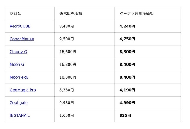同ショップではこれまで、スマートデバイスや周辺機器をはじめ、機能性とデザイン性を兼ね備えたガジェット製品を幅広く展開し、多くのお客様にご利用いただいてまいりました。日常をより快適に、よりスマートにする製品ラインナップは、多くの支持を集めてきました。今回の閉店にあわせて、人気製品を中心に、クーポン適用で最大50%OFFの特別価格にてご提供いたします。これまで気になっていた製品を手に取る絶好の機会として、ぜひご活用ください。