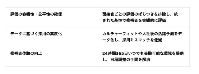 世間では AI 面接=効率化と捉えられがちですが、我々は全く逆の考えを持っています。AI を活用することで偏見やブレをなくし、一人ひとりのスキルやカルチャーフィットをデータとして精緻に可視化する。つまり、皆さんがこれまで積み上げてきた確かな実力を、どこよりも『正当に、そして全力で評価する』ための AI 導入なのです。