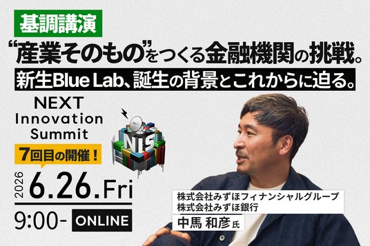 オープンイノベーションやCVCといった手法が定着する一方で、今、多くの大手企業は「いかにしてスケールを見込める事業を創出するか」という至上命題を突きつけられています。ゼロからイチを生む段階に留まらず、その芽を1から100、1000へと拡大し、確かな社会実装へと繋げるための、より実行力のあるアプローチを行うためには、何をすべきでしょうか。本セッションでは、みずほ銀行執行役員/Blue Lab代表取締役の中馬和彦氏を迎え、新体制へとアップデートを遂げたBlue Labの戦略を、金融業界における事業創出の進化事例として取り上げます。なぜ今、イノベーション創出活動を再定義し、組織を刷新したのか。金融というプラットフォームを活かし、いかにして大規模なスケールを見据えた挑戦を形にしていくのか。その背景と今後の展望に迫ります。