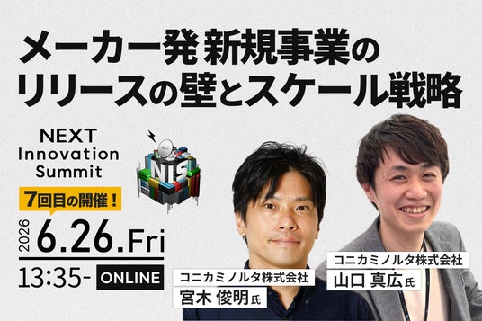 大手企業の社内新規事業は生み出すまでの課題も多々ありますが、生み出した後の課題も山積みです。事業リリース後、想定より売上に結びつかず撤退している事業も少なくありません。本テーマでは、コニカミノルタで新規事業を創業・推進しているお二人から事業リリースとスケール戦略について語っていただき、生み出す前と生み出した後それぞれの課題をどう突破したのか、社内新規事業を推進するためのTipsをお届けします。