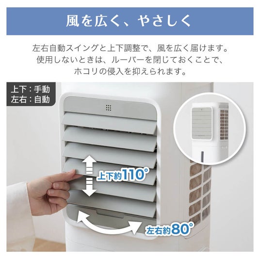 左右自動スイング&上下調整可能ルーバーで風を広範囲に