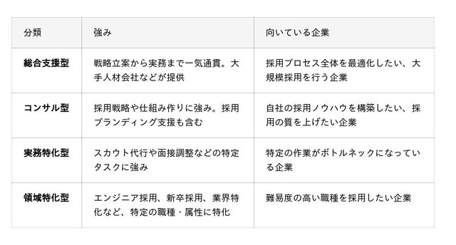 自社の現在の採用課題が「人手不足(工数削減)」なのか、「戦略不足(採用力強化)」なのかによって、最適なパートナーは異なります。
