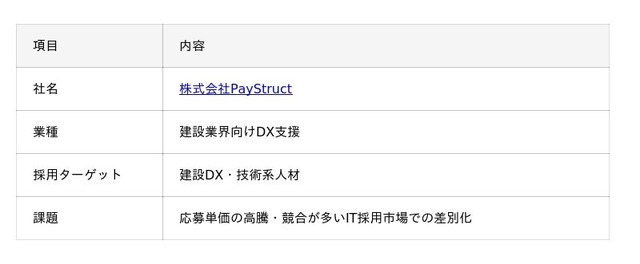 CASE 3:株式会社PayStruct(建設業界向けDX支援)企業概要と採用課題