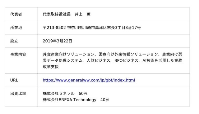 株式会社ゼネラルBREXAテクノロジーについて